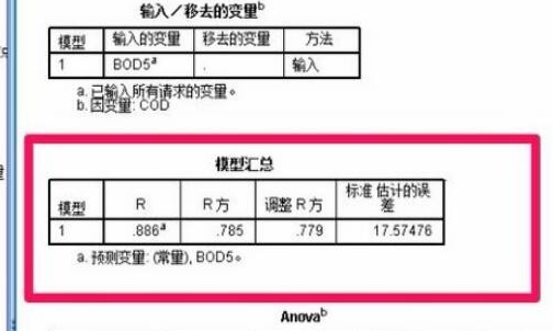 8、【Anova表】表示分析結(jié)果,主要看的是F和Sig值,F(xiàn)值對(duì)應(yīng)的Sig值小于0.05就可以認(rèn)為回歸方程是有用的,