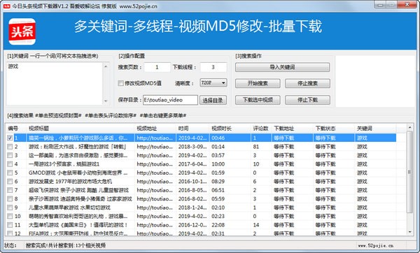 今日頭條視頻下載器修復版下載(批量視頻下載工具)就是一款非常不錯的視頻批量下載工具。它在原有版本的基礎上進行了算法修復,能夠快速獲取視頻,并且支持批量下載,非常給力哦!