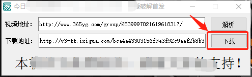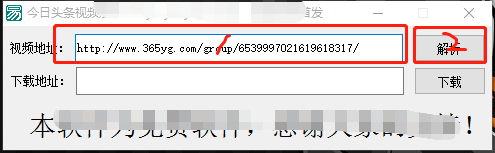 將從瀏覽器復制的鏈接粘貼到【今日頭條下載工具】軟件的【視頻地址】內,點擊【解析】即可