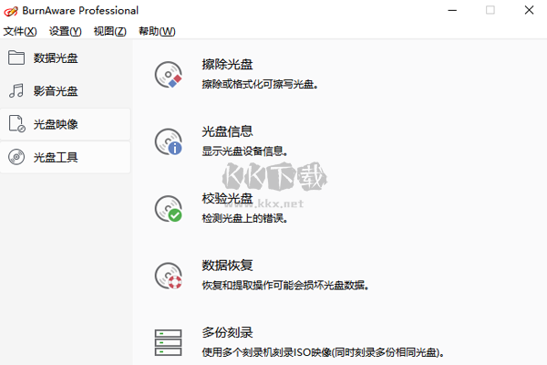 BurnAware涵蓋所有日常刻錄任務(wù),如光盤刻錄,備份,驗(yàn)證,圖像創(chuàng)建,復(fù)制,擦除,數(shù)據(jù)恢復(fù),音軌提取。