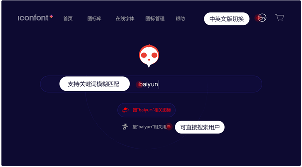 搜索:支持關(guān)鍵詞模糊搜索,可以搜圖標搜用戶,中文 / English / Ping yin 無縫互譯