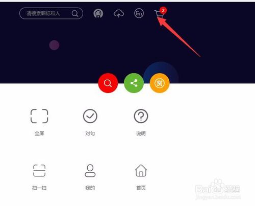 然后點擊左上角的“圖標”進入圖標庫,選擇你喜歡的圖標并加入購物車(鼠標經(jīng)過鼠標會有三個按鈕圖標,分別是加入購物車,收藏,下載),你也可以在右上角的搜索框中輸入你想要的圖標名稱。