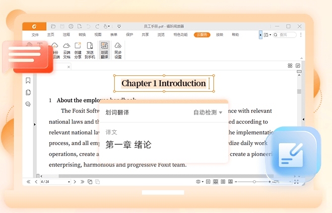 福昕PDF閱讀器提供了PDF文檔語音朗讀功能,讓您輕松享受文本內(nèi)容的有聲閱讀。通過安裝支持SAPI 5(語音應(yīng)用程序編程接口5)的語音引擎,包括微軟語音支持庫和高質(zhì)量的商業(yè)語音引擎,完成PDF文檔的語音功能,實(shí)現(xiàn)對(duì)英、日、法、中等多語言的支持。語音朗讀功能不僅支持朗讀文檔的文字內(nèi)容,也實(shí)現(xiàn)對(duì)注釋內(nèi)容和圖片描述信息的識(shí)別。