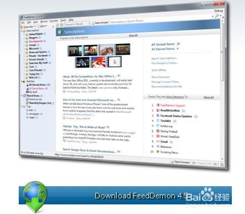 1、FeedDemon便攜式設(shè)計(jì),可以幫助您監(jiān)控和跟蹤你的RSS源的最新消息。