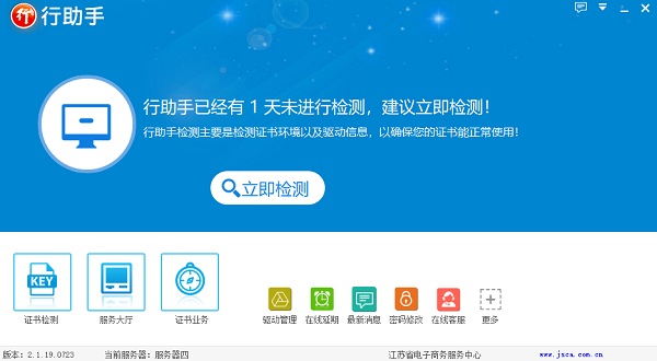 1)打開行助手2.0--證書檢測--若證書過期,請先延期。