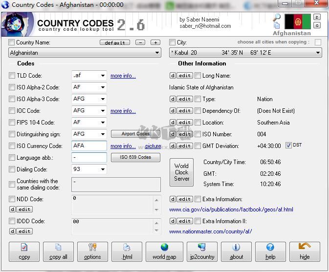 Country Codes軟件提供復(fù)選框,允許您將所有或僅選定的信息復(fù)制到剪貼板。此外,它還為每個啟動瀏覽器的國家提供了一個方便的鏈接,其中包含來自中央情報局世界概況手冊和NationMaster網(wǎng)站的詳細信息。它還提供了一些選項,例如導(dǎo)出到HTML文件以供打印或其他用途。