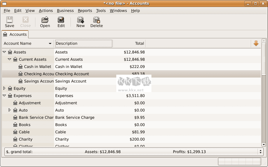 GnuCash財務(wù)管理軟件是一款免費(fèi)好用的財務(wù)管理軟件,適用于個人和微小企業(yè),支持多種操作系統(tǒng),能夠幫助用戶們快捷的進(jìn)行賬戶的跟蹤管理,你可以詳細(xì)的看到每一筆的支出和收入,擁有精準(zhǔn)的報表統(tǒng)計提供給大家,可以擁有一個靈活得到財務(wù)管理體驗,感興趣的用戶快來KK下載體驗吧~