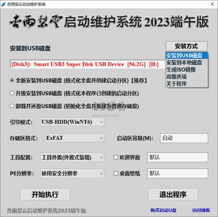 杏雨梨云U盤(pán)啟動(dòng)維護(hù)系統(tǒng)甲辰版是一款功能強(qiáng)大好用的U盤(pán)制作工具,用戶們可以根據(jù)自己的使用需求來(lái)進(jìn)行U盤(pán)啟動(dòng)盤(pán)的制作,杏雨梨云U盤(pán)啟動(dòng)維護(hù)系統(tǒng)甲辰版擁有多種模式提供給用戶們進(jìn)行選擇,兼容所有的電腦給用戶們提供便捷得到制作過(guò)程,幫助用戶輕松制作自己需要的U盤(pán)啟動(dòng)盤(pán),感興趣的用戶快來(lái)KK下載體驗(yàn)吧~