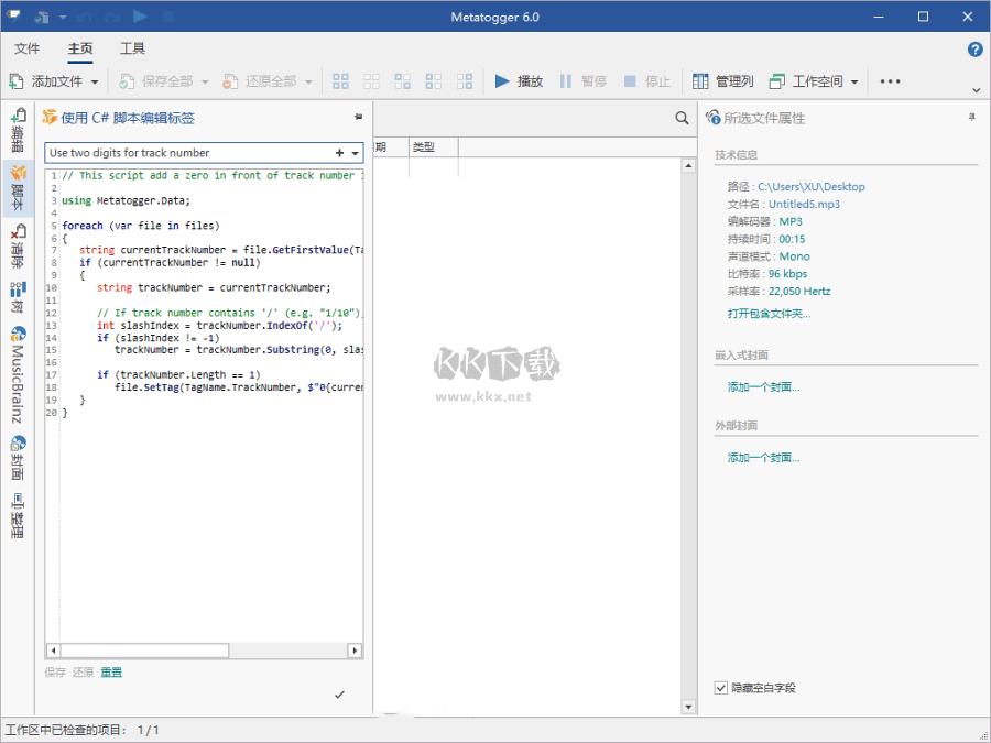 快速簡便的標(biāo)簽編輯:可以添加任何類型的標(biāo)記(多個標(biāo)記或回車)或刪除。使用C#腳本,Metatogger允許處理所有標(biāo)簽:字符替換,字體修改等。
