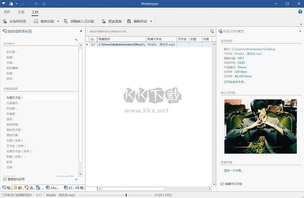 添加歌詞和封面:Metatogger可以訪問網(wǎng)站自動查找歌詞。Metatogger能夠通過網(wǎng)站搜索封面,允許直接嵌入標(biāo)簽或?qū)⑵鋸?fù)制到存儲音頻文件的文件夾中。
