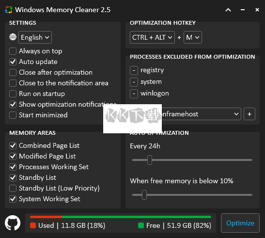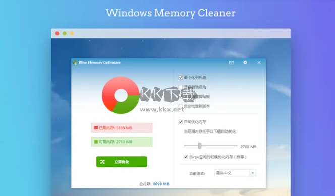 WinMemoryCleaner單文件版是一款高效的為用戶們準備的免費的RAM清理器,用戶們可以在WinMemoryCleaner單文件版為本機的電腦提供一個優(yōu)質(zhì)的內(nèi)存優(yōu)化,用戶們可以快捷的進行內(nèi)存資源的優(yōu)化,提高你的電腦的使用性能,工具簡潔又好用,不需要安裝,是提升電腦性能必備的工具喲,感興趣的用戶快來KK下載體驗吧~
