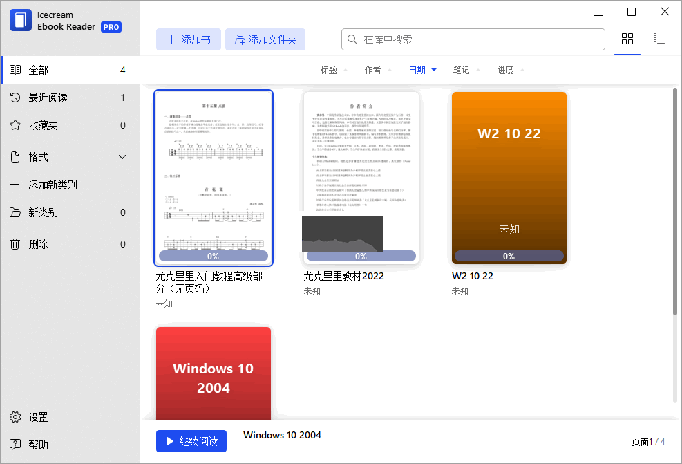 4、在表格視圖模式下顯示的所有數(shù)據(jù),即標(biāo)題,作者,進(jìn)度和添加日期,都可以按升序或降序排序。