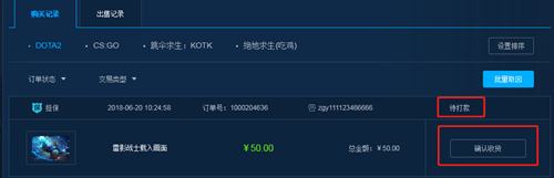 4、確認(rèn)支付并且支付成功后,前往個(gè)人中心我的訂單中查看該訂單,然后取回?!咀ⅲ簱?dān)保交易飾品需要在30分鐘內(nèi)取回,如30分鐘沒(méi)有取回則自動(dòng)取消訂單】