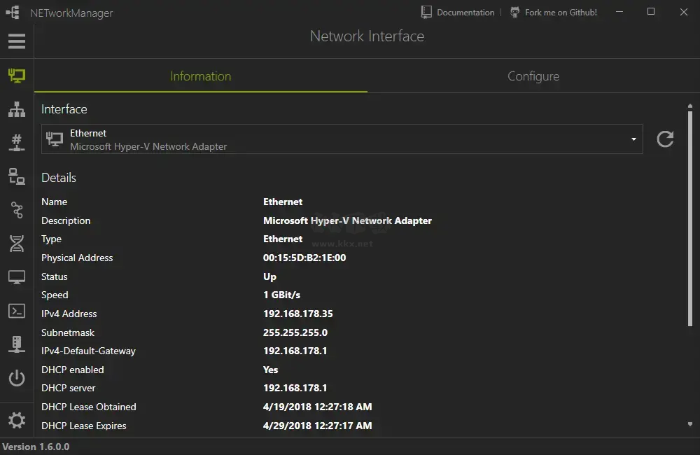 該網(wǎng)絡(luò)接口工具檢測計(jì)算機(jī)的最重要的信息,所有網(wǎng)絡(luò)適配器(如IP地址,DNS服務(wù)器等)。可以使用配置文件配置連接的網(wǎng)卡。