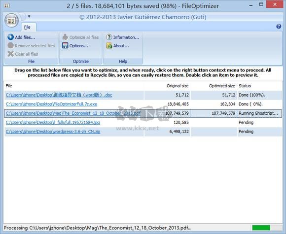 3、FileOptimizer綠色版支持拖拽操作,拖動文件到軟件中進行壓縮
