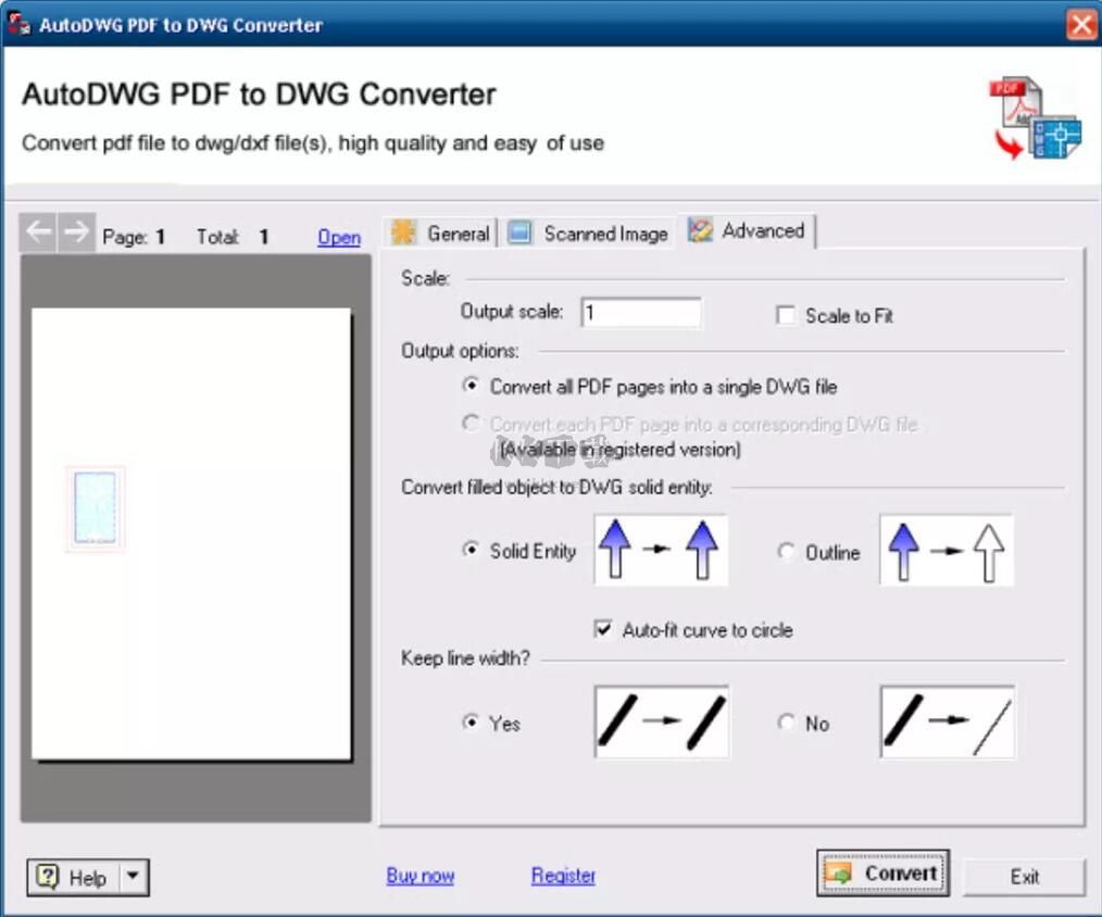 此外,可以將填充的對象轉(zhuǎn)換為DWG實(shí)體或輪廓,并使PDFIn PDF to DWG Converter保持線寬。