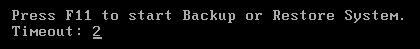 啟動過程中將自動跳過3個額外菜單,直達一鍵備份或一鍵恢復警告對話框(10秒后自動執(zhí)行)