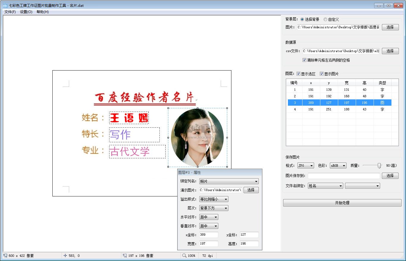 七彩色工牌工作證圖片批量制作工具特色