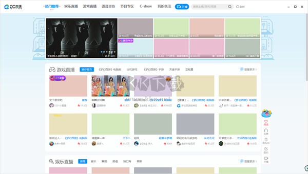 看到有許多人在問CC直播電腦版怎么下載,KK小編在CC直播電腦版為用戶們提供了一個便捷的下載接口讓你可以輕松的在CC直播電腦版下載了之后進行CC直播的使用,CC直播電腦版是網(wǎng)易旗下的一個便捷的娛樂直播平臺,用戶們可以在CC直播電腦版進行多人聊天方便的進行溝通,還能在CC直播電腦版全程的記錄下你的角色的成長經(jīng)歷,支持用戶們一鍵進行角色的導入,讓你可以輕松點額打造一個屬于自己的游戲語音平臺,感興趣的用戶快來KK下載體驗吧~