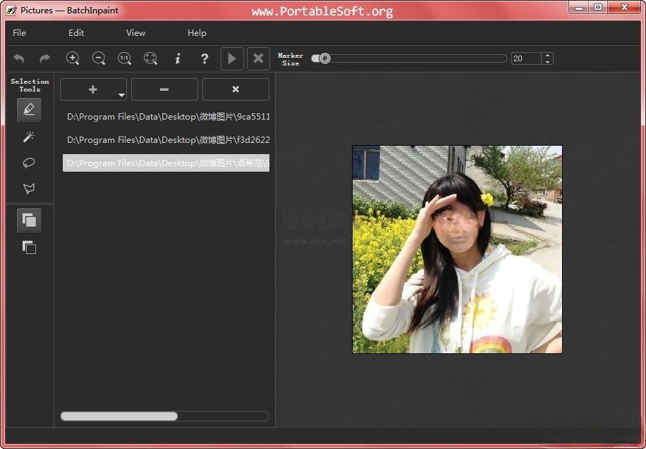 BatchInpaint Portable水印處理工具是一款便捷的給用戶們提供的圖片和文件夾的管理,支持用戶們編輯的在線批量的進(jìn)行圖片水印的使用,你可以輕松底色進(jìn)行水印的去處,快速有效的將圖片中的水印和瑕疵等等去除幫助你提高圖片的清晰圖和質(zhì)量,感興趣的用戶快來(lái)KK下載體驗(yàn)吧~
