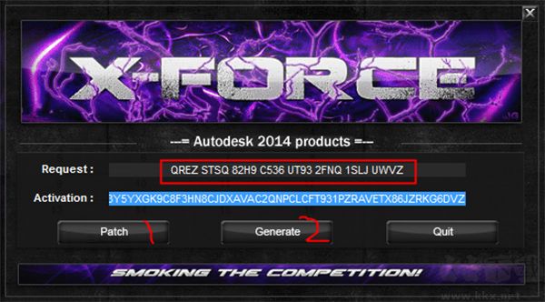 14.復(fù)制申請(qǐng)?zhí)柕阶?cè)機(jī)上的第一行,然后點(diǎn)擊第一個(gè)按鈕Patch,再點(diǎn)擊第二個(gè)按鈕Genetate,最后把注冊(cè)機(jī)第二行的激活碼復(fù)制粘貼到激活框中即可完成最新。