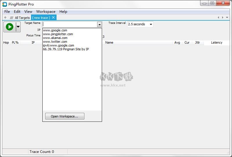 PingPlotter Pro路由跟蹤器是一款功能強大好用的幫助用戶們進行路由跟蹤的軟件,你可以輕松的處理各種網(wǎng)絡(luò)的問題,PingPlotter Pro路由跟蹤器結(jié)合了多種數(shù)據(jù)和圖像的表達讓你可以輕松的檢測分析路由的狀態(tài),高效的將網(wǎng)絡(luò)數(shù)據(jù)可視化的進行查看,讓你輕松的排出故障解決問題,感興趣的用戶快來KK下載體驗吧~