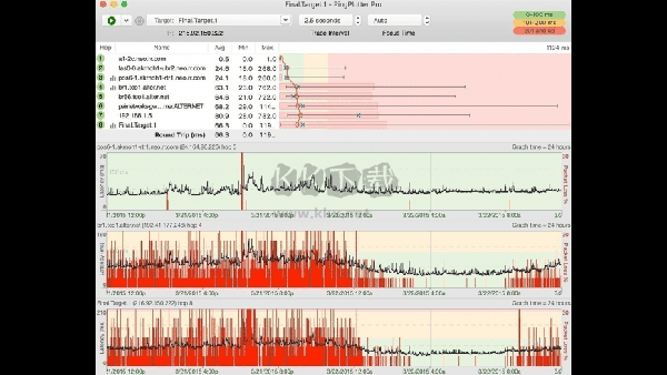 pingplotter pro可以同時追蹤數(shù)百個目標,并加載了企業(yè)強度的功能,例如用于廣播測試結(jié)果的Web服務(wù)器,用于遠程數(shù)據(jù)收集的工具以及用于VoIP故障排除的抖動圖表。
