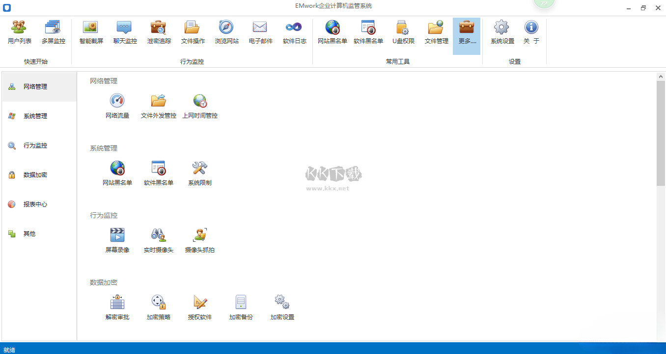 EMwork企業(yè)計算機監(jiān)管系統(tǒng)是一款為企業(yè)打造的便捷的員工上網(wǎng)行為監(jiān)控軟件,EMwork企業(yè)計算機監(jiān)管系統(tǒng)可以便捷輕松的掌握員工上網(wǎng)的時間、網(wǎng)絡黑名單的管理等等,超多便捷的網(wǎng)絡監(jiān)控功能提供給用戶們,讓你可以更好的管理員工,減少摸魚時間,提高工作效率,管理一切的上網(wǎng)行為,還能查看聊天記錄等等,感興趣的用戶快來KK下載體驗吧~