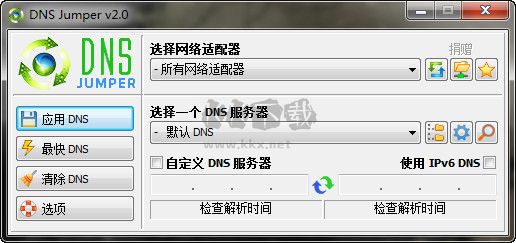 Dns Jumper(DNS一鍵切換)是一款簡(jiǎn)單好用的DNS一鍵切換工具,用戶們可以在這里便捷的進(jìn)行網(wǎng)絡(luò)的配置的修改,支持用戶們進(jìn)行多個(gè)DNS的服務(wù)器的選項(xiàng)的使用,你無需手動(dòng)的進(jìn)行網(wǎng)絡(luò)設(shè)置的修改就能快速的進(jìn)行捕獲和保存了,還能幫助用戶進(jìn)行DNS的記錄,讓你可以在下次快速的進(jìn)行網(wǎng)絡(luò)DNS的切換,保證網(wǎng)絡(luò)的穩(wěn)定性能,感興趣的用戶快來KK下載體驗(yàn)吧~