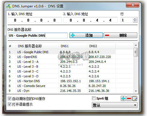 當(dāng)然,更改DNS的原因不止一點(diǎn),選擇一個(gè)適合自己的OpenDNS可以讓你的上網(wǎng)環(huán)境更安全;可以有效阻止訪問一些色情網(wǎng)站;加快網(wǎng)絡(luò)訪問速度等等,Dns Jumper 可以幫用戶自動(dòng)查找最快的DNS,并一鍵應(yīng)用;支持清空DNS緩存;支持DNS分組;最新版本加入對(duì)IPv6的支持。是一款非常優(yōu)秀而且免費(fèi)的DNS切換軟件。