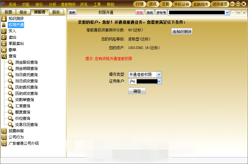 二、 登錄客戶端,進(jìn)入港股通菜單
