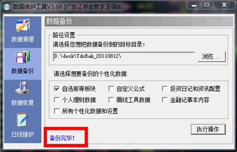 附注:數(shù)據(jù)維護(hù)工具也可以備份和恢復(fù)除自選股以外的其它幾種個性化數(shù)據(jù),建議用戶可以采取備份和恢復(fù)全部個性化數(shù)據(jù)的操作方式。