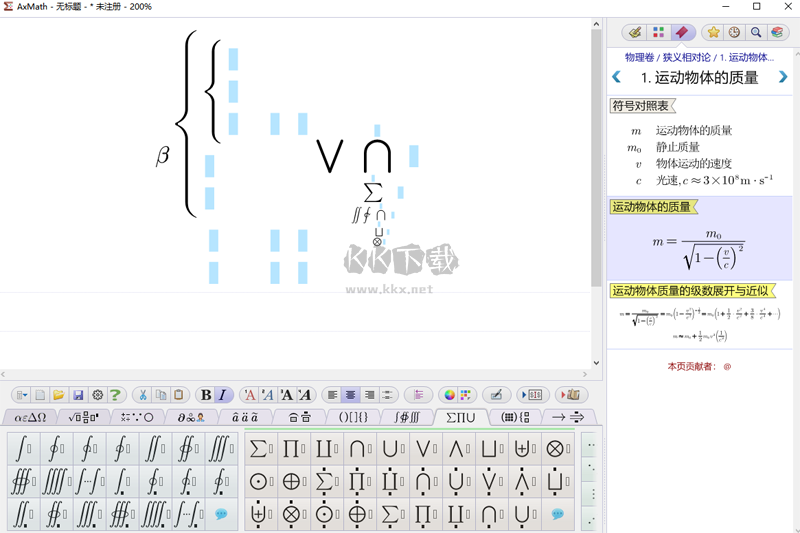AxMath數(shù)學(xué)公式編輯器是一款給用戶們提供高效的數(shù)學(xué)公式編輯和排版的軟件,AxMath數(shù)學(xué)公式編輯器擁有豐富的數(shù)學(xué)符號(hào)和公式提供給用戶選擇使用,你可以高效的進(jìn)行公式的輸入和編輯,給你提供了多種格式的使用,還能將公式應(yīng)用到其他的文檔中來(lái)進(jìn)行使用喲,感興趣的用戶快來(lái)KK下載體驗(yàn)吧~