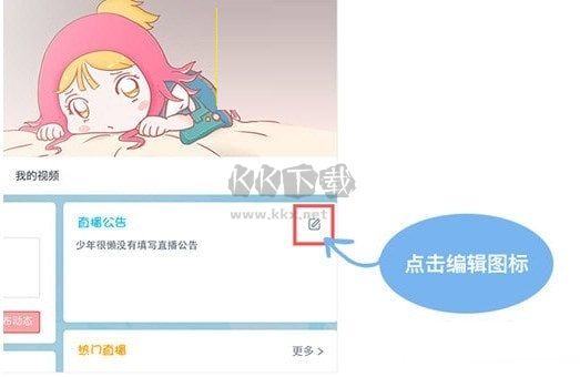 PC端登錄官網 – 進入自己的個人中心 – 我的空間 – 右側直播公告小窗 - 點擊編輯圖標修改。