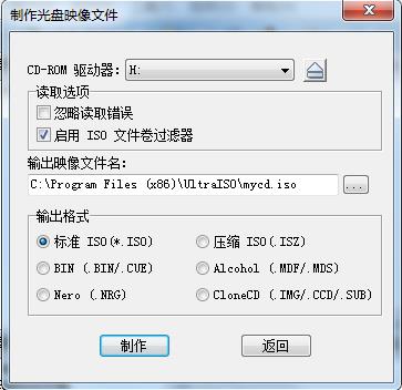 2、選擇ISO鏡像文件,選擇你讀取的光驅(qū)和保存ISO文件的位置名稱,然后點擊制作就可以了。