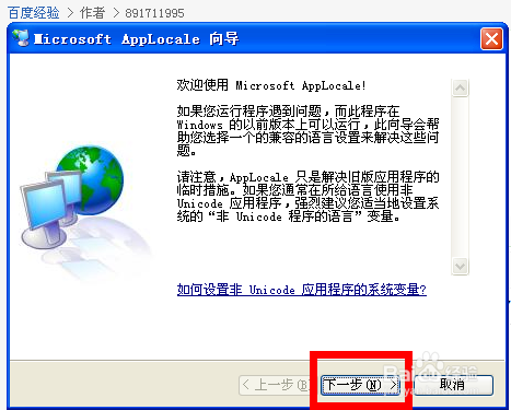 1.將kk下載分享的地址獲取安裝microsoft applocale,打開安裝程序,點擊下一步繼續(xù)安裝;