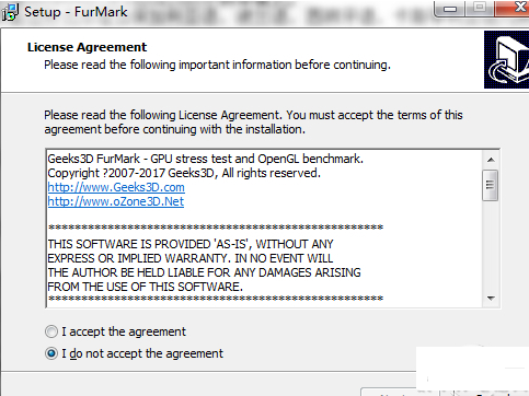 第一步:雙擊運(yùn)行Furmark安裝程序,選擇同意。