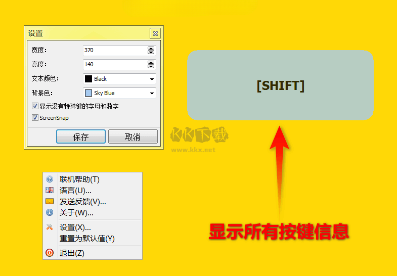 應(yīng)用程序的主菜單安靜地位于系統(tǒng)托盤中,而您可以查看按鍵的實(shí)際窗口可以放置在您選擇的屏幕上的任何位置。