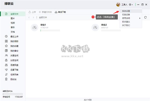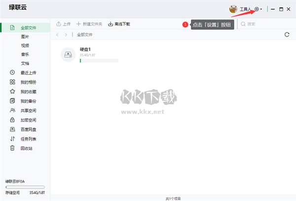 1、打開綠聯(lián)私有云電腦版,點擊「設(shè)置」按鈕;