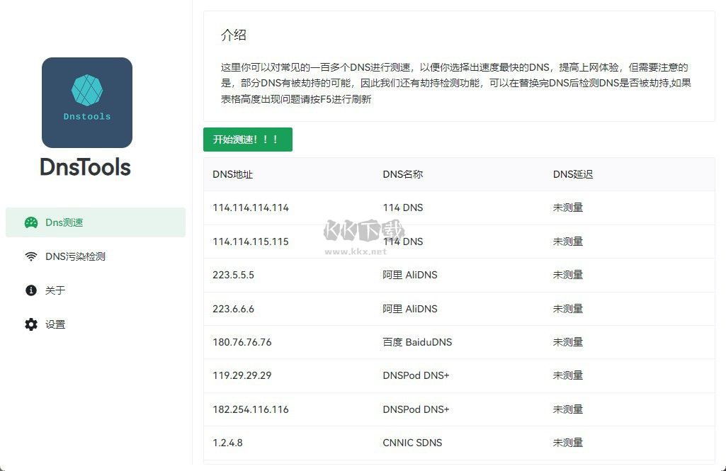 DnsTools綠色版是一款輕量級高效好用的DNS測速和污染監(jiān)測工具,用戶們在DnsTools綠色版結合了超多的高性能和易用性的功能提供給大家,能夠很好的幫助用戶們進行DNS的選擇,來優(yōu)化你的網(wǎng)絡情況,幫助你高效的進行網(wǎng)絡的連接使用,感興趣的用戶快來KK下載體驗吧~