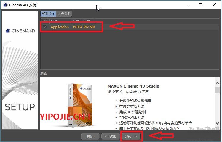 3.點選CINEMA 4D,點擊”繼續(xù)”