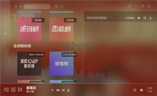4、由于該軟件具有網(wǎng)易和QQ的雙平臺引擎,因此您可以在一秒鐘內(nèi)輕松切換帳戶,歌曲搜索結(jié)果和歌曲列表建議。