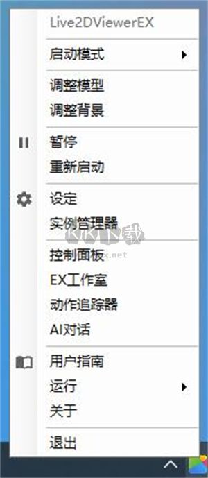 首次啟動(dòng),應(yīng)用會(huì)顯示,托盤圖標(biāo)、快捷圖標(biāo)、默認(rèn)模型和背景,并彈出一個(gè),控制面板窗口