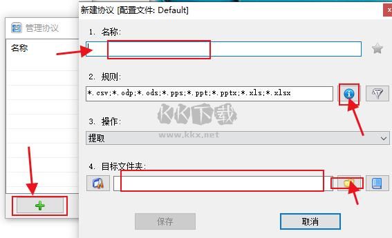 3.點擊左下角綠色加號添加協(xié)議,名稱隨意,規(guī)則可以分類中選擇也可以自己些(注意格式)設(shè)為正則表達式,操作根據(jù)需求,這里設(shè)置為提取,保存即可