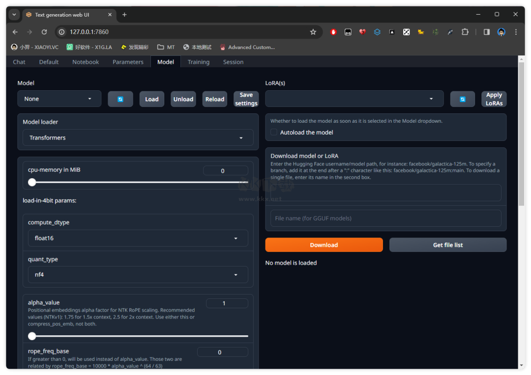 這里已經(jīng)安裝好了 Text generation web UI 大模型 Web 啟動(dòng)器,具體就不演示了,感興趣的自己下載安裝。