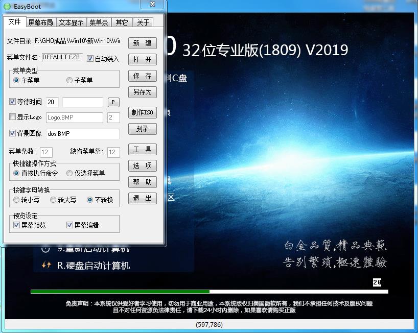 1、整個(gè)界面是圖形化的,我們可以全新制作啟動(dòng)界面,也可以修改EZB文件來改變引導(dǎo)菜單界面,很容易上手。