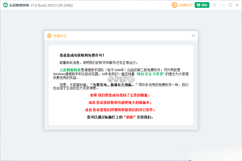 云起數(shù)據(jù)恢復(fù)免費(fèi)版軟件說明