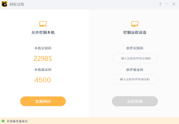 3、啟動軟件后可以看到有設備識別碼和驗證碼信息,在相同軟件上面輸入這些信息就可以進行遠程控制了。