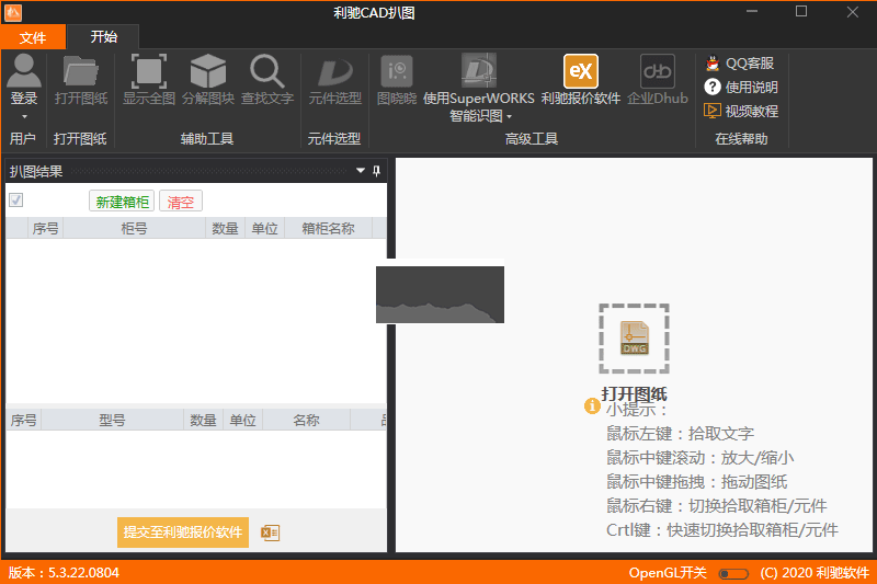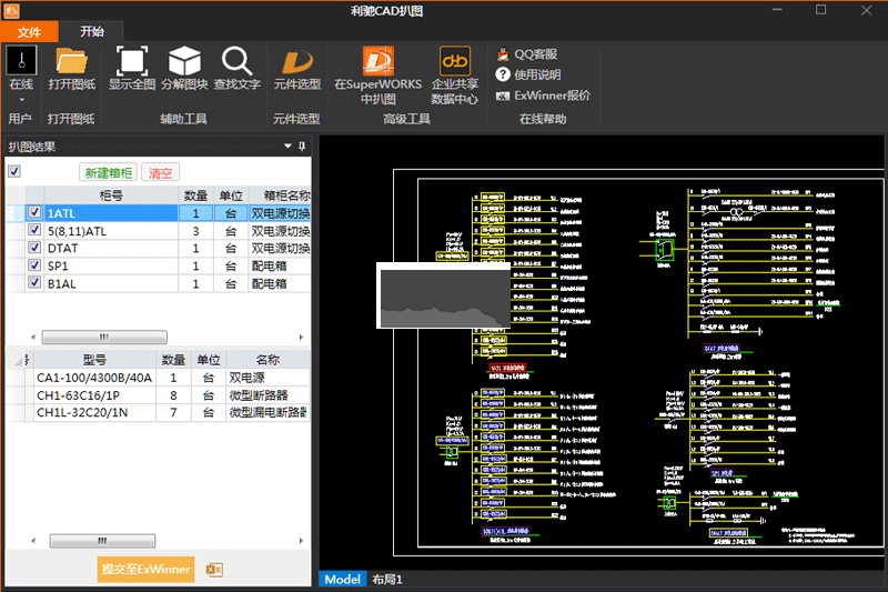1、可以快速查看CAD圖,查找內(nèi)容、拾取箱柜、元件內(nèi)容,輸出表格結(jié)果。
