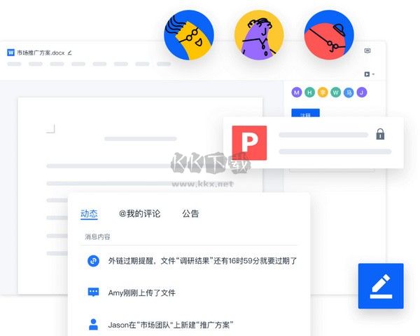 3、討論溝通和消息通知:基于文件內容進行討論,通過消息傳遞討論要點,@功能方便提醒關注